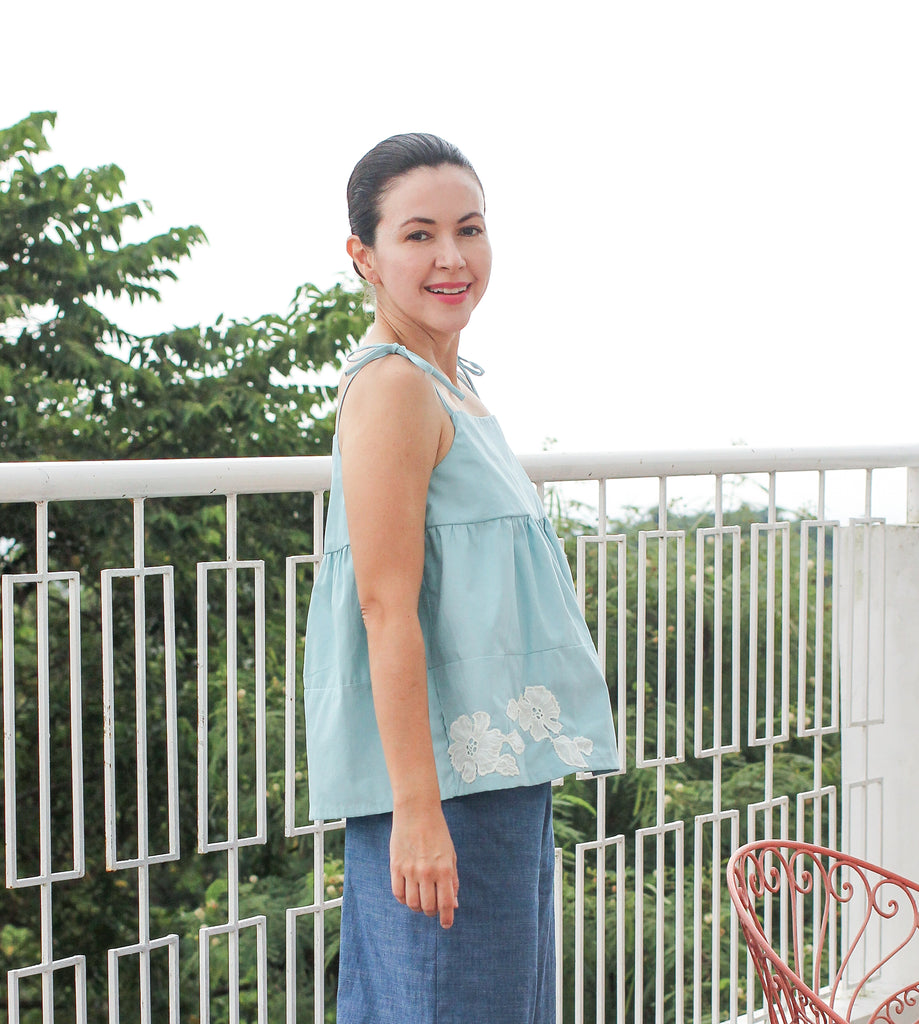 Amara Top in Light Blue with Embroidery